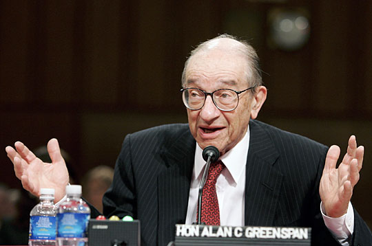 Oh no, nothing wrong here. Don’t look at the man behind the curtain! People talk about Bush’s smirk, but you look at Greenspan’s, he makes Bush look like a store mannequin, he has it on so much.